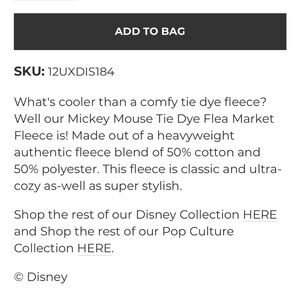 New! Junk Food Clothing MICKEY TIE DYE FLEA MARKET FLEECE