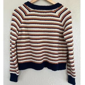 Madewell Arden Striped V-Neck Pullover Sweater XXS Cropped Knit Cotton Sweater