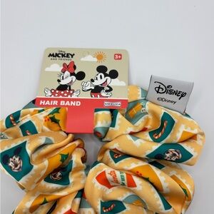 Charming Disney hair band with Mickey and Friends design. Cream and green colors with playful patterns.