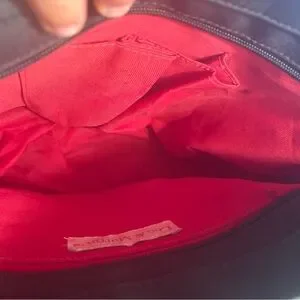 Honestly I’m not sure - so sorry to not have more info. Front and inside good but back in fair condition because of discolor and stains. Cute bag still though overall. Was trying to send another pic - I’ll add it to the listing