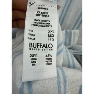 Buffalo David Bitton XXL Blue White Striped Linen Blend Button Down Shirt