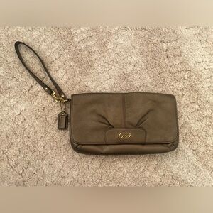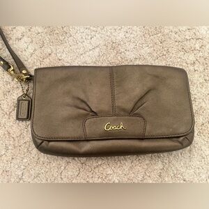 COACH Y2K Leather Wristlet | Metallic Mini Zip Wallet