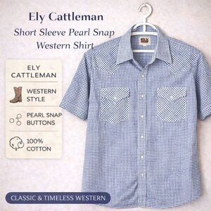Timeless western style with a clean, versatile look. This Ely Cattleman short sleeve pearl snap shirt features a crisp blue and white check pattern with classic yoke detailing and snap chest pockets. Lightweight and breathable, it’s perfect for warm weather, casual wear, or western-inspired outfits. Easy to style with denim, boots, or layered under a jacket for a modern ranch-to-town vibe.