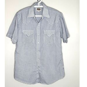 Ely Cattleman Blue White Check Pearl Snap Western Shirt Short Sleeve M
