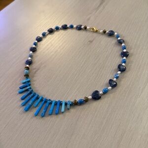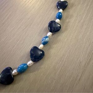 🔥This necklace is 19.5“ overall length and features a graduating design of ceramic turquoise in the middle. Accents of natural pearls, aurora crystals, turquoise quartz, sodalite hearts and a yellow gold plated lobster claw clasp.
