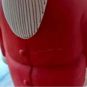 This 11" pottery Santa Claus figurine is a unique and handmade piece from 2004, signed by Karl & Beatrice. It is crafted in an asymmetrical shape, hand-painted in red, and features a 3D effect, making it a standout collectible for the Christmas season. The Arts & Crafts Movement style, combined with its large size and indoor use, adds to its appeal as a novelty item for adult collectors. This figurine is a one-of-a-kind piece that embodies the spirit of holiday-themed art and seasonal decor.