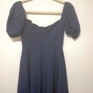Kutumai Maxi Off-Shoulder Puff Sleeve Dress Front Slit Navy Size Small PTP 15 “