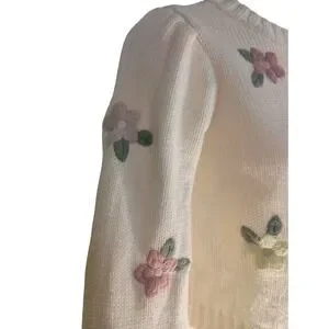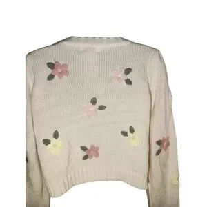 jessica simpson cottage pink purple yellow floral embroidery long sleeve Sweater