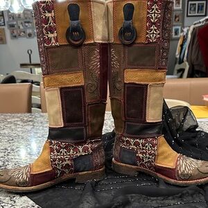 Timberland Patchwork Sz 6 Embroidered Knee high boots