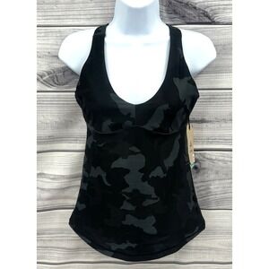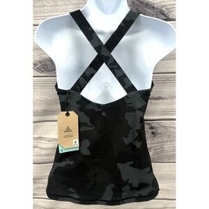 PRANA LAYNA BRA TANK TOP Women's Size XS BLACK CAMO ATHLETIC CRISS CROSS BACK
