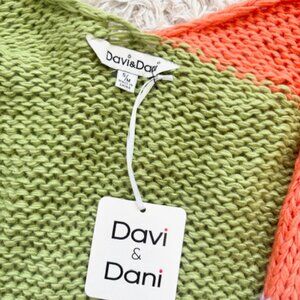 DAVI & DANI Colorblock Cardigan - Green, Pink, Orange