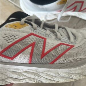 New Balance White and Red Athletic Shoes with Cushioned Midsole