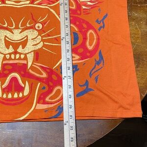 Von Dutch Vibrant Orange Tee with Snake and Lion Design Eye-catching orange tee by Von Dutch. Features a dynamic snake and lion graphic with blue flame accents. This shirt is brand new with tags straight from the Von Dutch store. Amazing price.