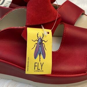 NWT Fly London Bade Rug red leather platform wedge sandals.
