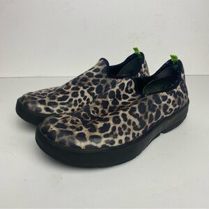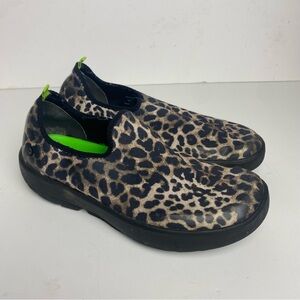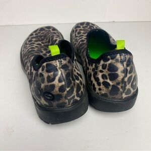 OOFOS OOMG EeZee Slip On Shoe Sz 9 Black Brown Leopard Comfort Recovery Slip On