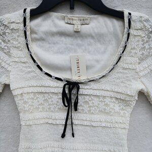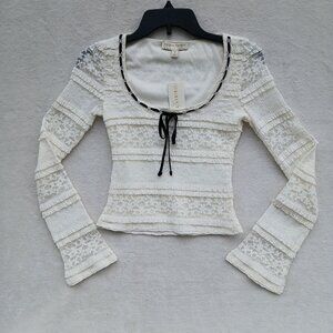 NEW Womens Small Y2K White Lace Tiered Fairy Grunge Long Bell Sleeve Dollete Top