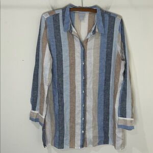 Beautiful 100% linen striped button down tunic from Chicos.