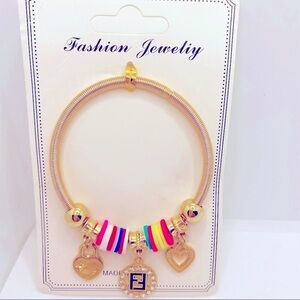 Bracelet Hearts Crystals Beads Golden tone. Won’t Tarnish or loose shape. Fits up to 8 inches. BRAND NEW IN PACKAGING!