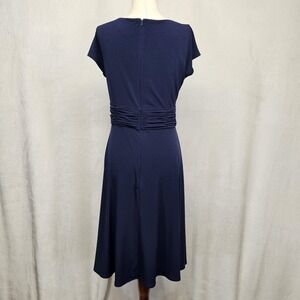 Christopher & Banks Dress Womens 10 Navy Blue Ruched Waist Midi Short Sleeve