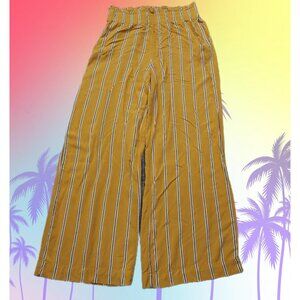 Abercrombie & Fitch cozy lounge wide leg pants in a mustard yellow comfortable and relaxed designed for lounging. Made from a cozy fabric, these slit on pants feature an 3 inch elastic waist for a comfortable fit and convenient side pockets for added functionality. The wide-leg style offers a stylish and relaxed look, making them perfect for lounging in style at home.