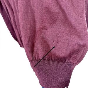 There are quite a few tiny to small holes that have been repaired (see photos). Not very obvious when on but probably about a dozen of them, all have been sewn/repaired. Otherwise in good condition, no stains