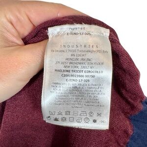 MONCLER Maglione Tricot Girocollo Logo Patch 100% Wool Jumper Sweater Burgundy