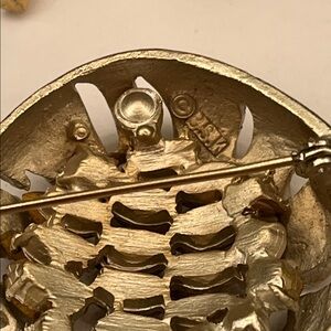 Unsigned gold toned brooch with yellow rhinestones