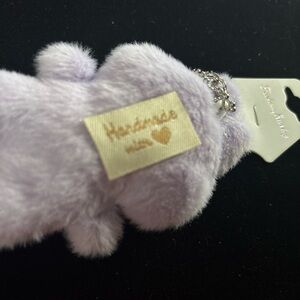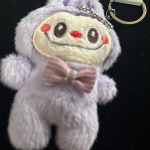 Adorable purple plush keychain with a bow tie. Perfect for adding charm to your keys or bag.