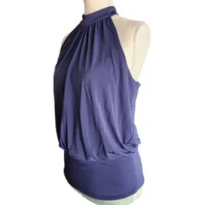 Boston Proper Navy Blue Halter Banded-Bottom Mock-Neck Knit Top Women's XS