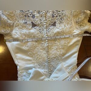 Wedding dress ivory satin w/ lace long sleeve, pearl beading & matching cape. S
