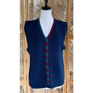 Vintage Stevemor Navy Blue Acrylic Knit With Green & Burgundy Twist Sweater Vest