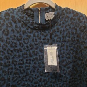 NWT MILLY Women's Metallic Cheetah Dress Color: Lurex Lapis Sz Lg III