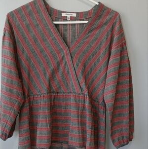 Madewell Crossover Bubble Sleeve Peplum Striped Top Size XS Cottagecore