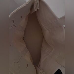 This stylish tote bag features a sophisticated cream and navy design, perfect for any occasion.