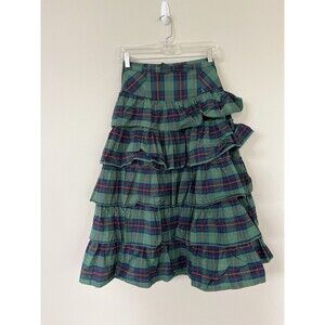 Urban Outfitters Midi Skirt Rainee TierGreen Plaid Retro Boho Preppy Size Medium New
