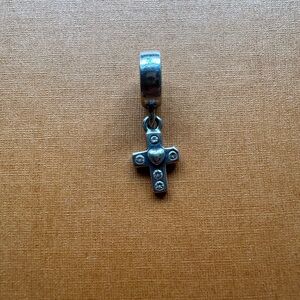 Vintage pandora silver cross charm with a heart center