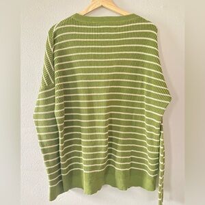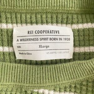 REI Thermal Waffle Knit Striped Top Women’s XL Green Long Sleeve 100% Cotton