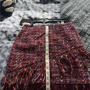 Stylish asymmetrical tweed skirt by Zara. Features vibrant fringe detail. Perfect for a bold look.