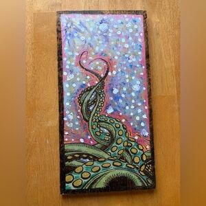 Octopus Tentacle Pyrography on Wood Panel Mixed Media Painting Wall Art 17X9