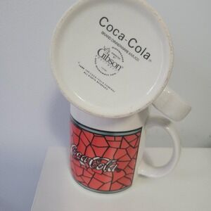 Enhance your morning ritual with this set of vintage Coca-Cola mugs, featuring a charming stained glass design. These mugs, measuring 3.75" tall x 4.75" wide with handle, are in excellent condition with minimal wear and no chips or cracks.