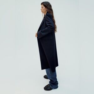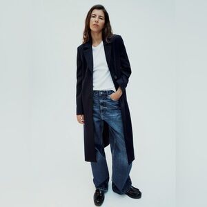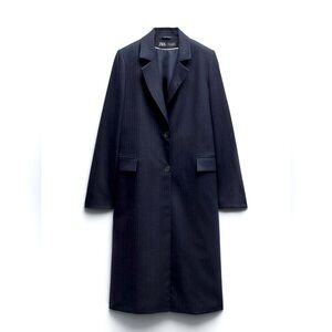 ZARA SHOULDER PAD PINSTRIPE COAT NAVY BLUE PERFECT FOR FALL❣️