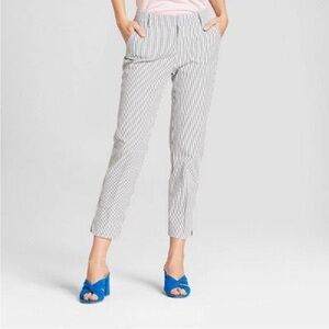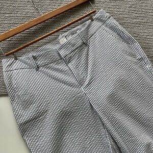A New Day Charcoal gray silver and white seersucker stripe stretch ankle pant. Waist 17”, rise 10.5”, inseam 27”. Size 10. Excellent condition.