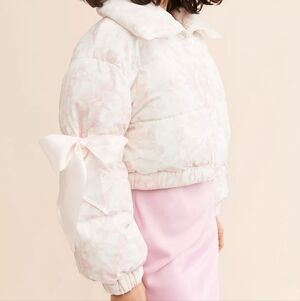 Cropped puffer jacket with functional bows