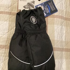 15, Anthracite Our Solid Mittens Black are a must-have for the kid who loves to spend time out in the snow. With insulation to keep little hands warm in temperatures as low as -30° C (-22° F), these mittens feature a brushed microfiber lining, a rubber layer for better gripping, and a weather-resistant coating. A convenient hook makes them easy to hang on a snowsuit or coat. Fabric coated with a polyurethane coating (5000mm/5000g/m²/24hr) which makes it weather resistant and allows moisture to evacuate Cold insulation down to -30°C (or -22°F) The fabric is treated on the outside with a durable and eco-friendly protector for improved water resistance. The fabric's durability is rated on 30 000 rubs wear resistance. Hook for hanging mittens on snowsuits Lower side coated with rubber layer for better adhesion to objects Fixed brushed microfiber lining to keep hands dry Safety reflective elements 100% Polyester Fits true to size From 12 months to 16 years