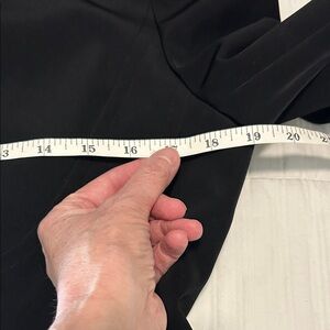 Chic black trench coat with button closure. This trenchcoat features, silver snap/twist buttons, single breasted design, two front pockets and a wide collar. Excellent condition, like new! 100% polyester. Timeless design for versatile wear. Measurements laid flat: