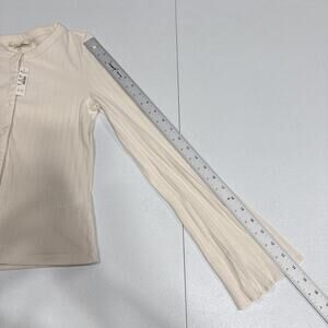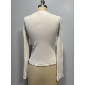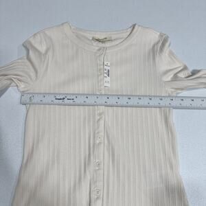 Madewell Flared-Sleeve Cardigan Sweater Top XS Beige Button Up Crew Neck Ribbed