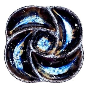 Add a touch of elegance to your home with this stunning ceramic dish. Featuring a captivating swirl design in blue and brown, it's perfect for any decor.