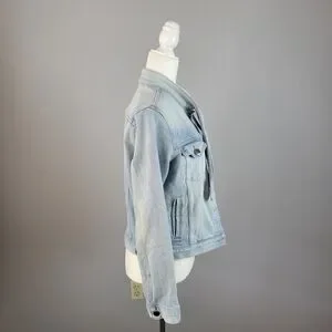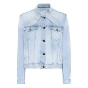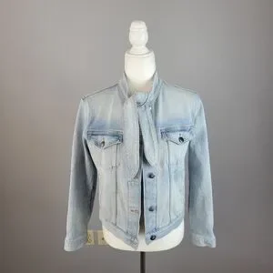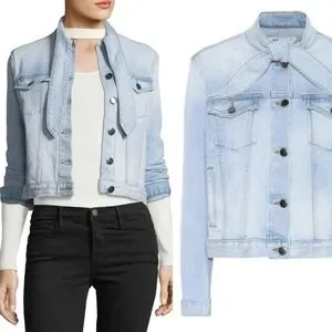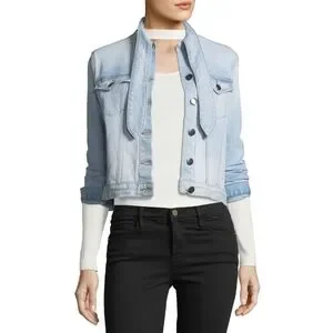 FRAME // le tie neck button front slim fit soft stretch denim jacket littleton