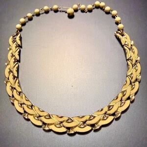 Vintage CORO Cream Enamel Gold Braided Link Collar Necklace