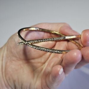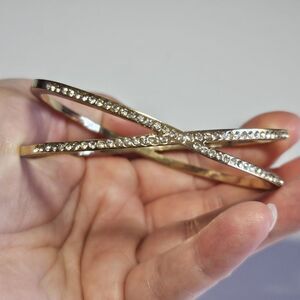 Gold Tone Criss Cross Clear Rhinestone Bangle Bracelet 7.25"